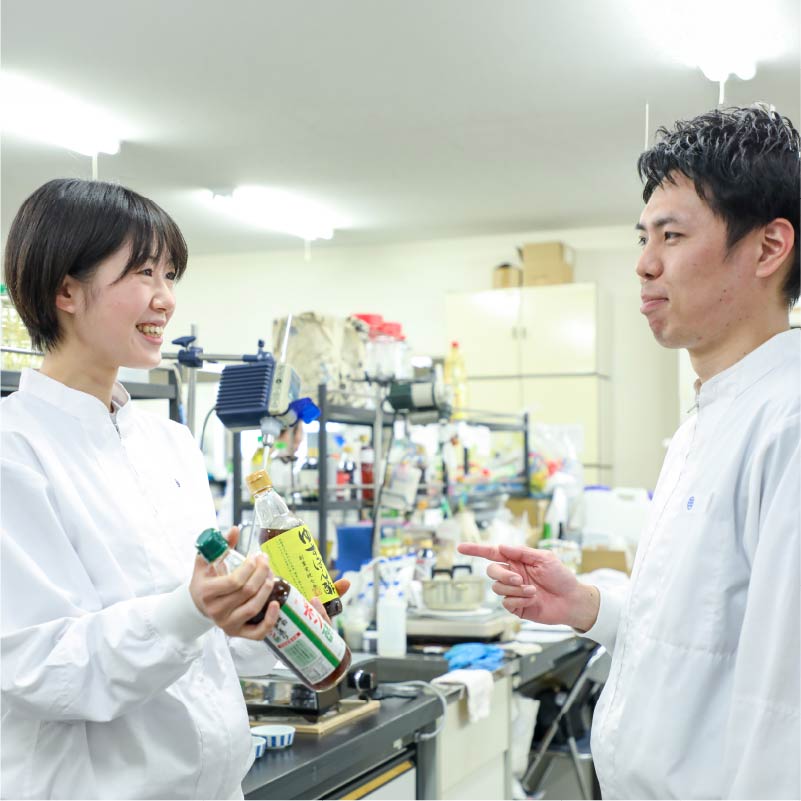 1年目の10月からは、本格的に商品開発に取り組んでいます。まだ先輩に色々聞きながらですが、OEM案件を担当中。ラジオとのコラボ企画用の調味料を作ったりもしました。これは1つの食材を2つの調味料で調理し、どちらの料理が美味しそうかリスナーさんに投票してもらい、票が多かった方の調味料が商品化されるというものです。新人としては、職場の雰囲気が和やか&話しやすい先輩ばかりなので、何でも聞きやすいのが助かっています。仕事以外の話で盛り上がることもありますよ。最近だと部署内で休みを取って海外旅行をした方がいるのですが、その方の旅行中に「●●さん、楽しく過ごせているかな~」なんて私たちが想いを馳せていたことも (笑)。ちなみに話しやすいのは社長もそうで、社長のトークは面白いですよ!うちの会社は質問にちゃんと丁寧に返してくれる人ばかりですから、説明会や面接ではぜひたくさん話してほしいですね。